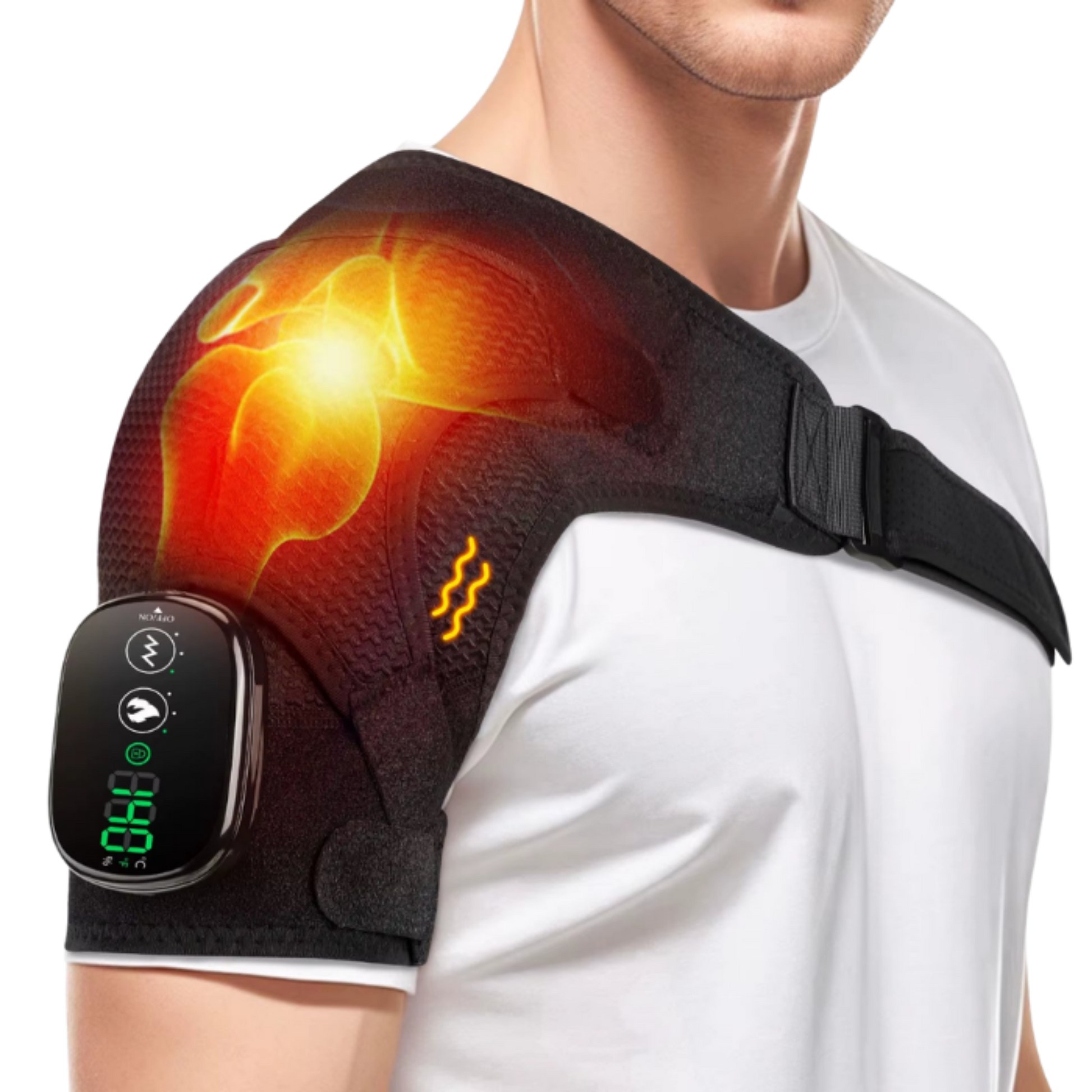 El sistema de calor ajustable ayuda a relajar los músculos del hombro, mejorar la circulación y reducir la sensación de rigidez después del ejercicio, trabajo o largas horas de actividad. -