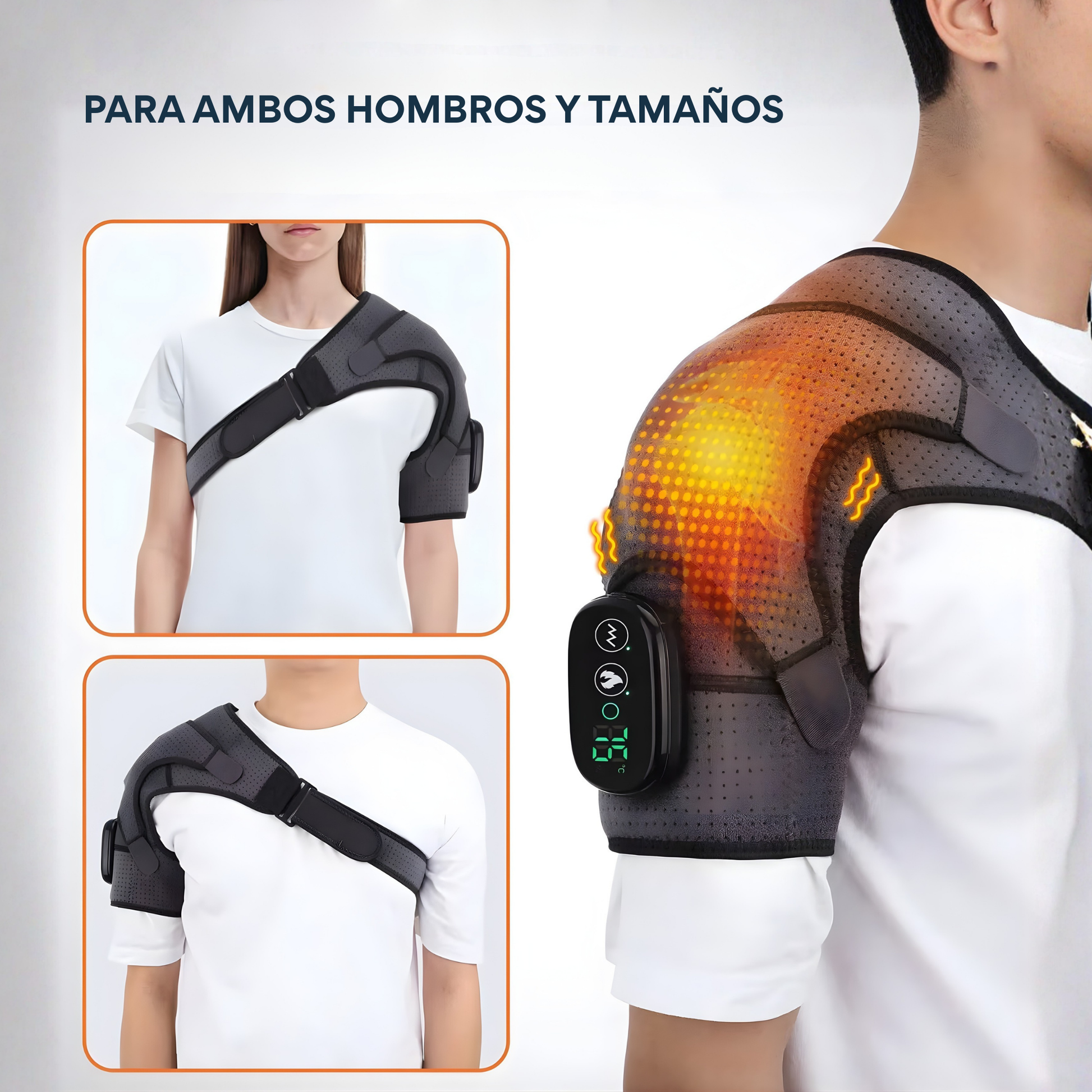 Su diseño ergonómico permite utilizarlo en ambos hombros y ajustarlo fácilmente a diferentes tipos de cuerpo. Gracias a su sistema de calentamiento rápido y vibración terapéutica, proporciona un alivio profundo y eficaz en pocos minutos.